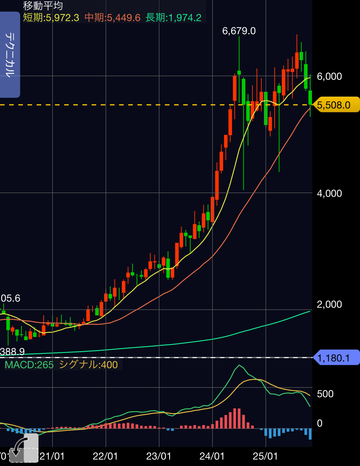 ただし、機会損失とのバランスも考慮し、100株程度であれば中期MA程度で買ってもよいか、といった塩梅でしょうか。