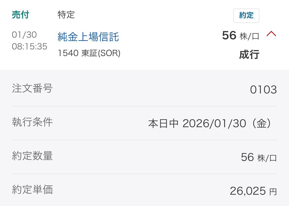 ゴールドもだいぶ上がりましたのでいったん利確することとしました。