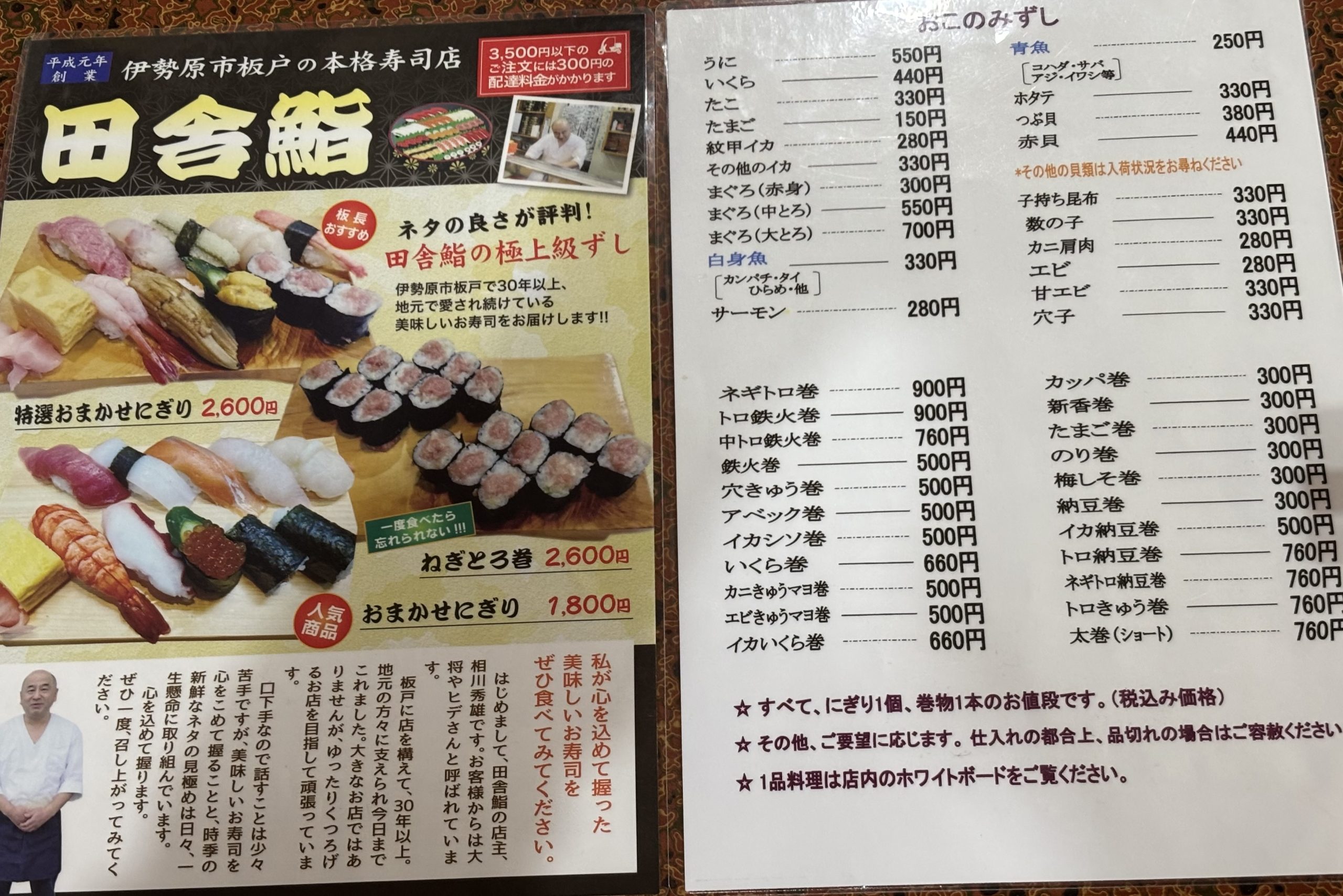 【伊勢原】田舎鮨:人情味あふれる老夫婦が供する絶品の数々